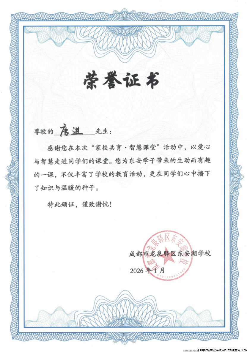 1月5日下午,受东安湖学校邀请,支部组织委员唐进一行参加该校组织的2025-2026学年上期“家校共育·智慧课堂”活动。