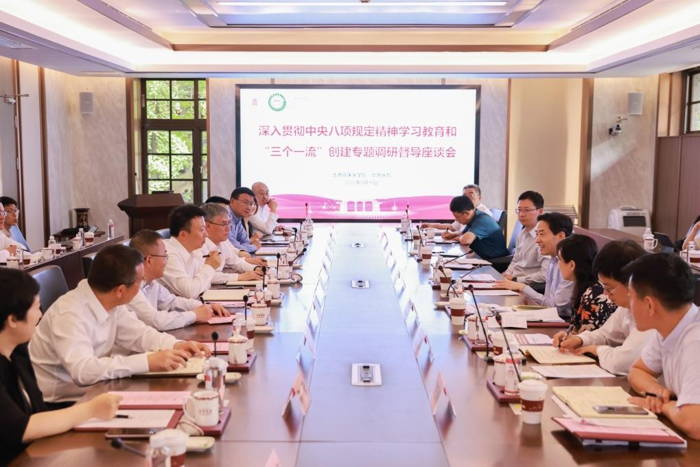 甘霖指出,深入贯彻中央八项规定精神学习教育开展以来,学校党委按照党中央统一部署,坚决扛起政治责任,聚焦主题、周密部署、以上率下,一体推进学查改。全校上下要坚持深学细悟,筑牢思想根基,持续深入学习领会习近平总书记关于加强党的作风建设的重要论述、中央八项规定及其实施细则精神,深刻认识深入贯彻中央八项规定精神取得的伟大成就、积累的宝贵经验,不断增强严格落实中央八项规定精神的政治自觉、思想自觉、行动自觉。要敢于动真碰硬,带头严查实改,对照清单整改问题,建立集中整治台账,制定整改举措,立行立改,务求实效。要坚持党的全面领导,充分发挥党委抓大事议大事谋大事、领导改革发展的政治责任,深入开展“三个一流”创建活动,持续深化改革,以高质量党建引领保障高质量发展。要坚持常态长效,层层抓好落实,一体推进学查改,一体推进党风政风、师德师风、校风学风、医德医风持续向好,切实把学习教育成果转化为学校高质量发展成效。