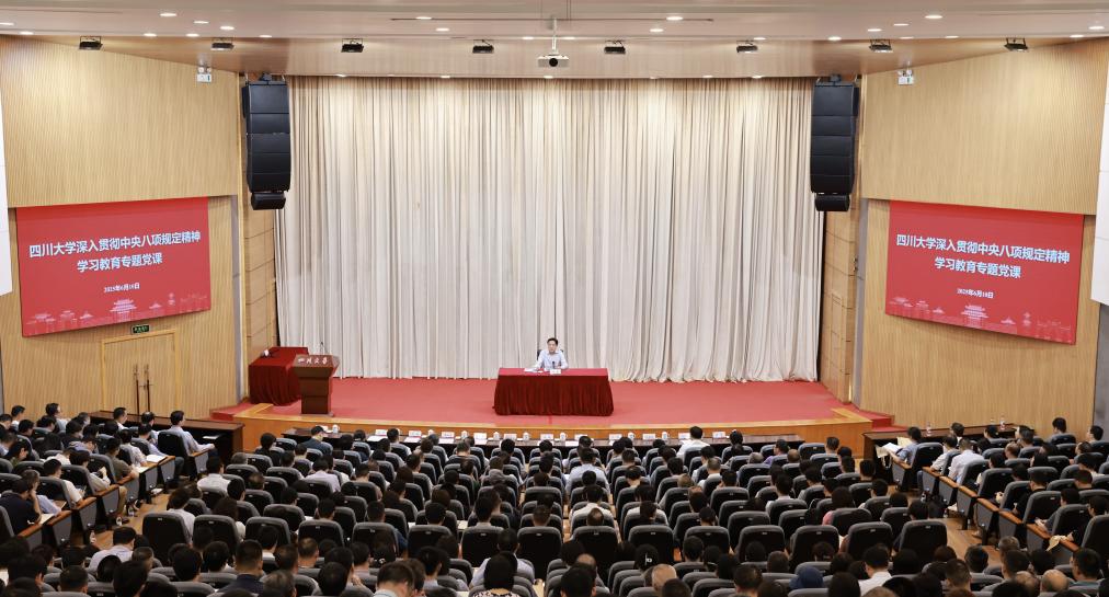 6月10日,校党委书记甘霖以“深入学习贯彻中央八项规定精神,以优良作风护航中国特色世界一流大学建设”为题,为学校党员干部讲授专题党课。教育部直属高校党建工作联络员、西南财经大学党委原副书记曾道荣,全体校领导、校“两委”委员、全体中层领导人员,新提任干部、年轻干部、关键岗位干部代表,专职组织员、师生党支部书记、党员代表等听课。校党委副书记黄园主持。