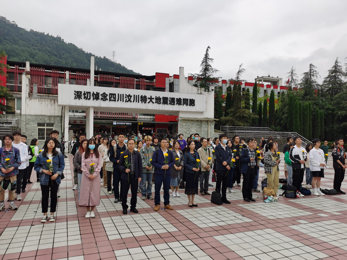 随后在讲解员的带领下,全体师生党员怀着沉痛的心情,参观了漩口中学遗址。汶川大地震已经过去整整15年,当年的地震灾区也早已走出阴霾,在灾后重建中,漩口中学的废墟被作为遗址完好地保留了下来,供人们铭记和缅怀。漩口中学遗址前,在阵阵哀乐声中,李红同志带领师生党员依次献花,以表示对逝者的深切悼念。师生党员在亲眼目睹了震后的断壁残垣,听到了地震中发生在漩口中学多个感人故事,看到了全面人民万众一心,支援灾区的真实事迹照片后,真切的感受到了“任何困难都压不倒英雄的中国人民”的坚定信念。