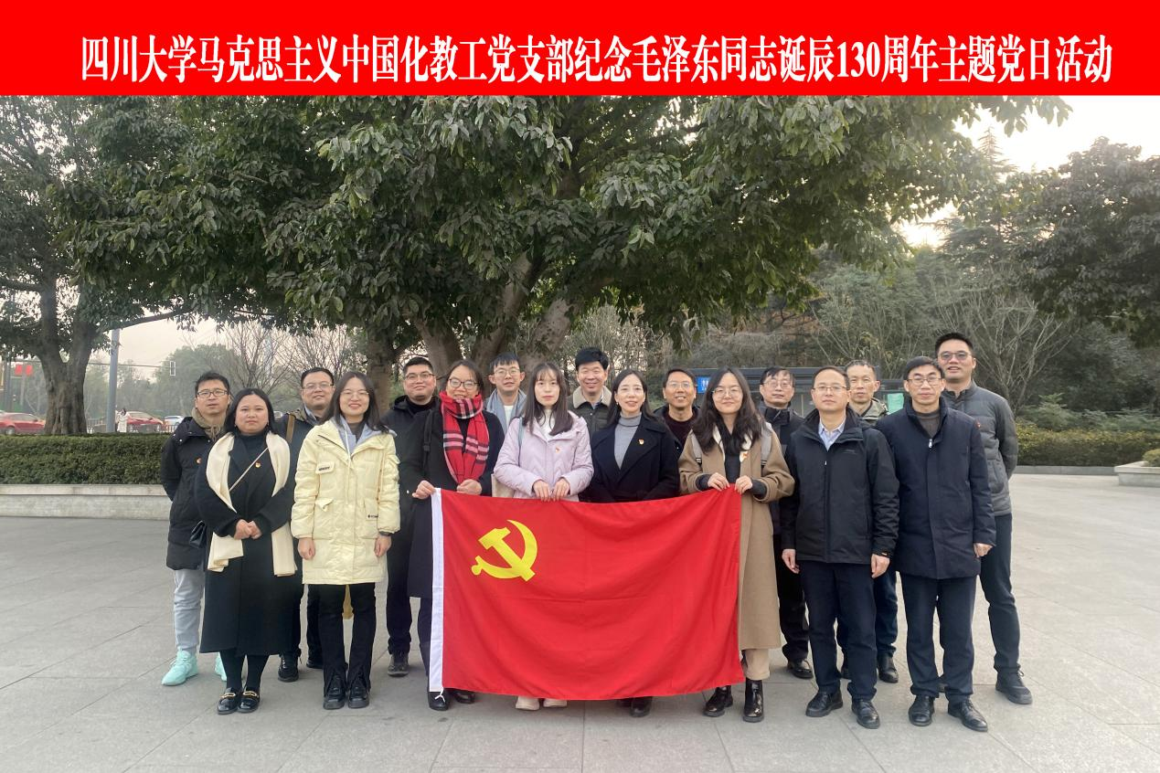 2023年12月26日上午,在毛泽东同志诞辰130周年之际,为深切缅怀毛泽东同志为党和人民建立的不朽功勋,追忆学习毛泽东同志的崇高风范和革命精神,发扬红色传统,赓续共产党人精神血脉,马克思主义中国化教工党支部前往成都市新都区桂湖公园开展“诵读伟人诗词,感悟红色情怀——纪念毛泽东同志诞辰130周年 ”主题党日活动。本次主题党日活动由学院党委委员、支部书记李红同志主持,支部全体党员参加。