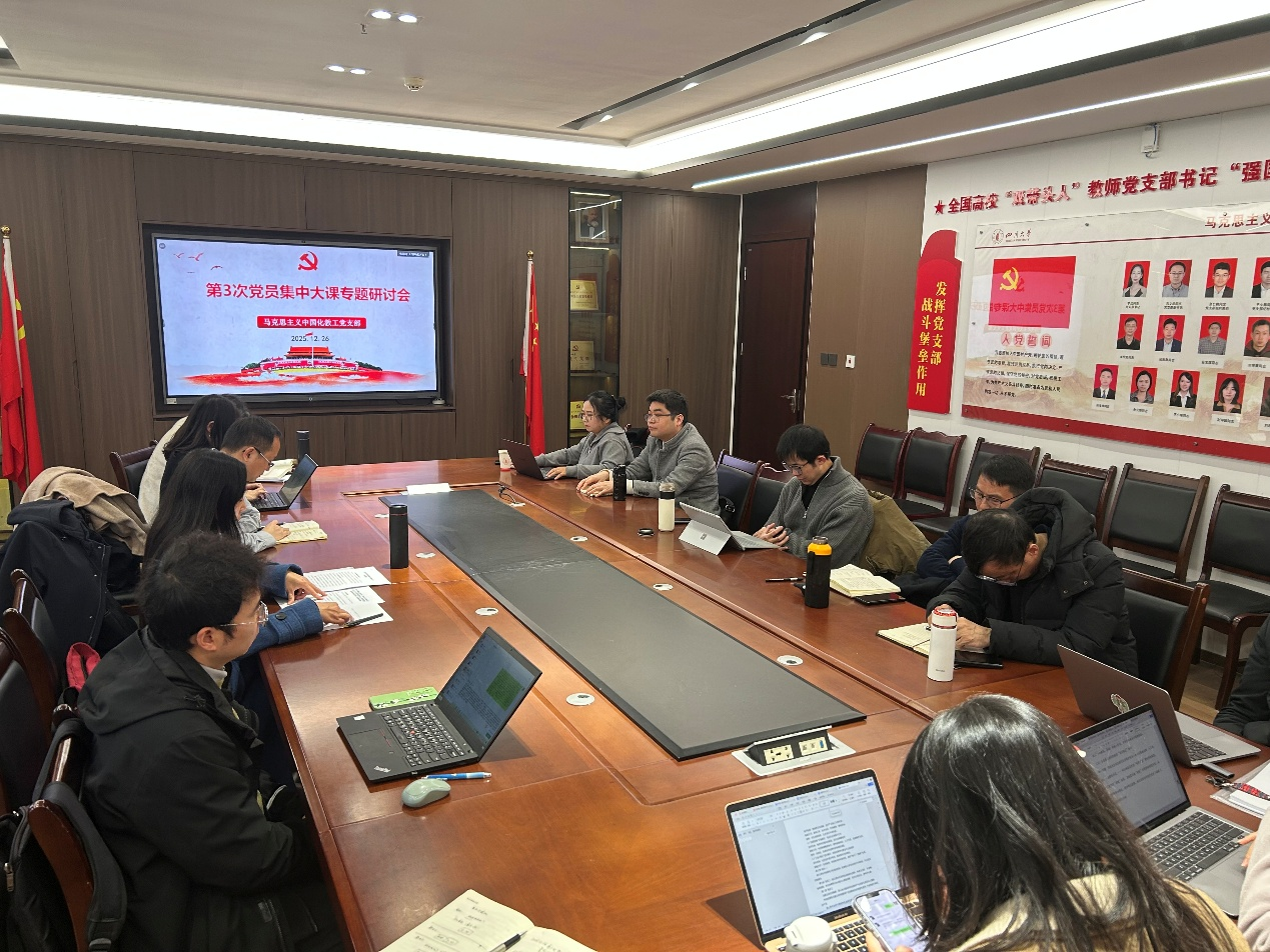 2025年12月26日下午,马克思主义中国化教工党支部在江安校区文科楼307召开党员培训第三次集中大课专题研讨会。会议由学院党委委员、党支部书记李红主持,全体党员参加会议。