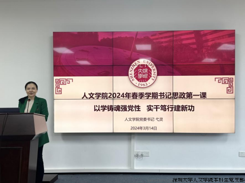 为深入学习贯彻党的二十大精神和习近平总书记在中青年干部培训班开班式上的重要讲话精神,2024年3月14日中午,人文学院组织召开了2024年度学生骨干培训营第一讲暨书记思政第一课。人文学院党委书记弋灵、党委副书记林娜、学工办主任郑鑫、全体辅导员及学院学生骨干共90余人参会。人文学院本科生第二党支部书记严贤婷主持会议。
