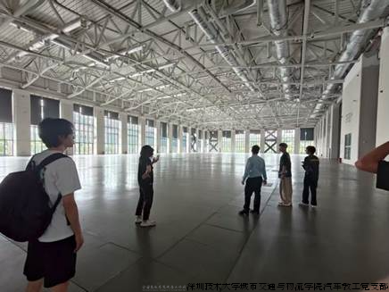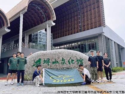 7月17日,调研团队从深圳技术大学城市交通与物流学院出发,首站抵达坪山文化聚落,实地走访坪山区美术馆、书城、展览馆等文化地标,重点考察场馆空间布局、展览设施及公共教育功能,探讨“汽车+艺术”主题特展落地可行性。