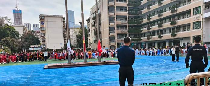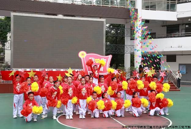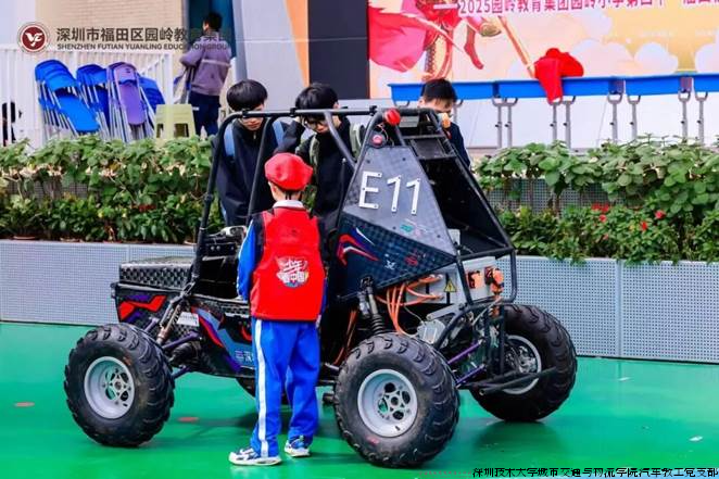 11月27日上午,园岭小学运动会开幕式在园岭小学操场隆重举行,初中部、小学部约600名学生及家长代表共同观摩。各年级学生组成的方阵依次入场展现风貌,无人机社团以“龙凤呈祥”为主题开展编队表演,机器人空中足球项目开展精准控制与对抗展演。随后,赛车工作室邓秉辉、廖斌韬、梁浩麟同学向现场师生系统介绍这款由深圳技术大学学生自主设计、制造的电动巴哈赛车,涵盖动力系统、结构设计及环保特性等方面的创新亮点。