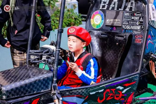 展示环节引起同学们的极大兴趣,不少同学踊跃上前,接触赛车部件、询问原理,部分同学在老师和志愿者的引导下,有序上车体验,感受作为“小车手”的乐趣。现场互动频繁,气氛活跃,电动赛车不仅成为连接高校与中小学的科技纽带,也在孩子们心中播下了探索科学、敢于创新的种子。