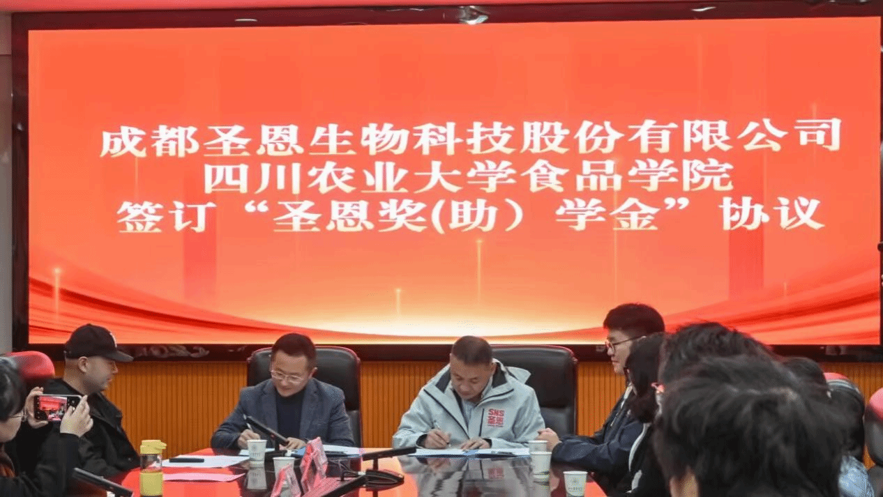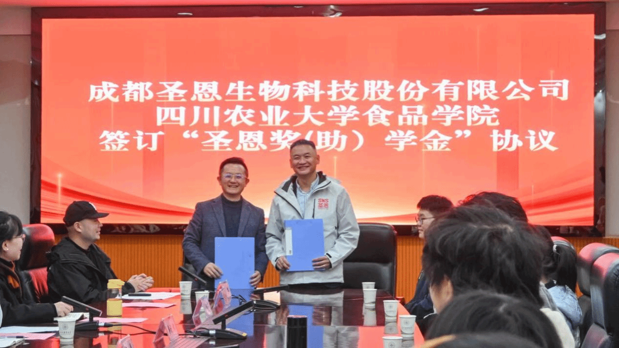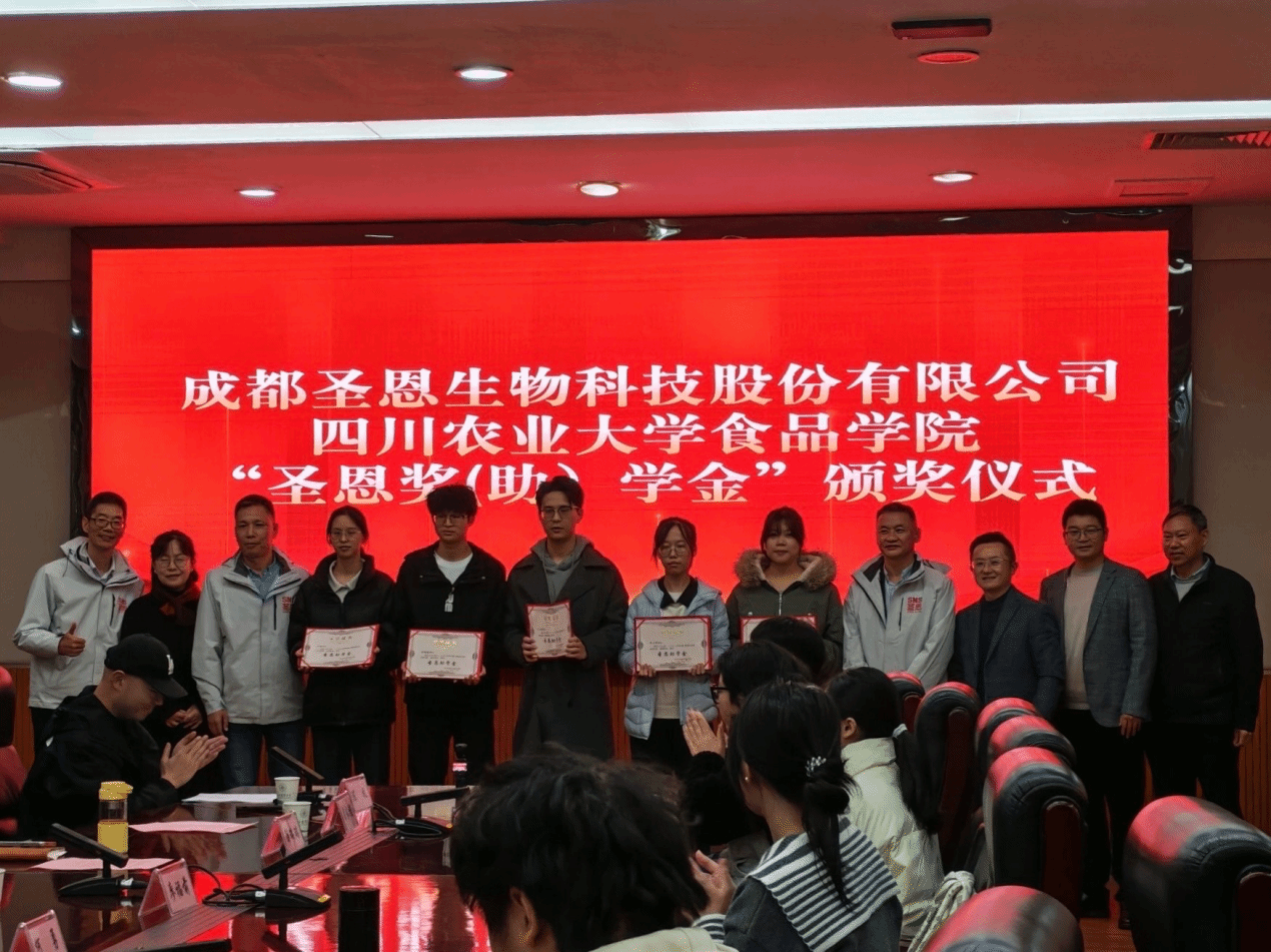 本次“圣恩奖助学金”的设立,是成都圣恩生物科技股份有限公司履行社会责任、支持教育事业的重要举措,也是学院奖励资助工作的卓越成效。未来,双方将继续携手并肩,共同探索产学研融合新模式,实现院企优势互补、互利共赢,为推动我国食品产业高质量发展作出更大贡献。