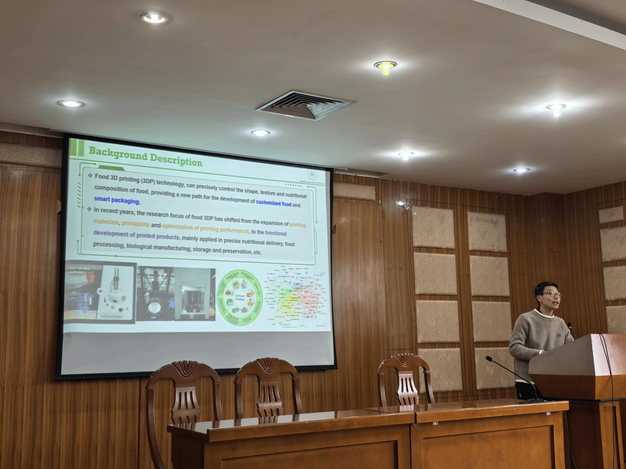 支部刘耀文教授则以《Food 3D Printing-Driven Customized Food and Smart Packaging Innovation》(食品3D打印驱动的定制食品与智能包装创新)为题,展示了近年来团队在3D打印食品和3D打印智能包装领域的理论研究、产品开发和设备创制等所做的工作,深入剖析了3D打印技术在营养定制化食品与食品保鲜智能包装领域的创新进展。报告详细阐述了该技术的具体实现路径、当前面临的关键挑战以及未来发展方向,为相关领域的科研与应用提供了重要思路。