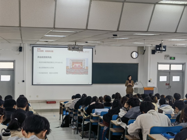 3月18日,麻醉学院党总支副书记、院长张蕊于A305教室,为学生讲述了一场以“教育领航,思政铸魂”为主题的思政课。2024级全体本科生及学工办辅导员参加。