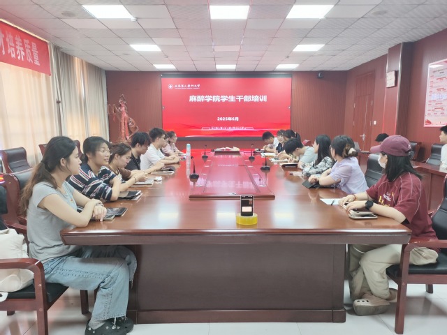 近日,麻醉学院在敏行楼31418会议室组织召开“领航计划”学生干部培训会议。培训以“筑梦扬帆守初心 砥砺奋进新征程”为主题,麻醉学院学工办辅导员、学生会各部门负责人及班团干部代表参加会议。