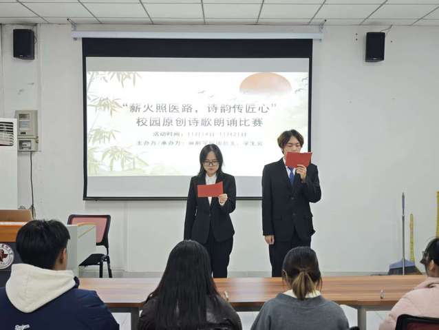 近日,为传承“乐道济世”的职业初心,弘扬中医药文化底蕴与古典诗韵之美,麻醉学院举办“薪火照医路,诗韵传匠心”原创诗歌朗诵比赛。