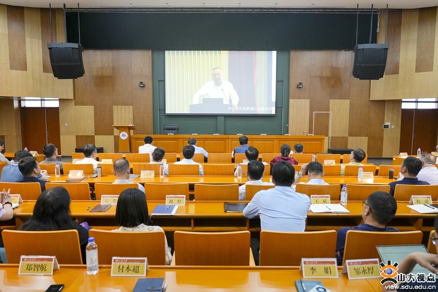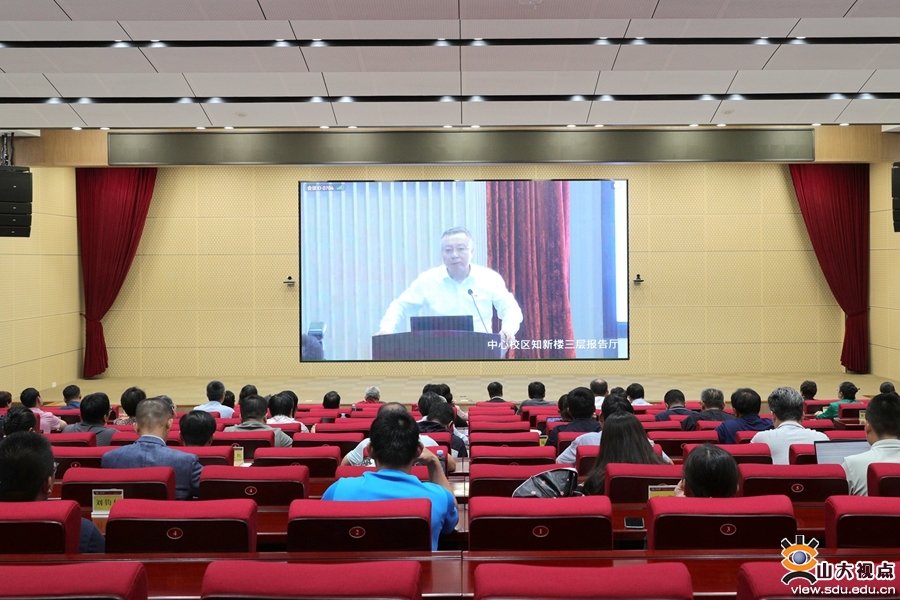 会议通过“主会场+视频分会场”形式举行。中心校区设主会场,威海校区、青岛校区、齐鲁医学院设视频分会场。校领导、全校副处级以上领导干部参加党课。