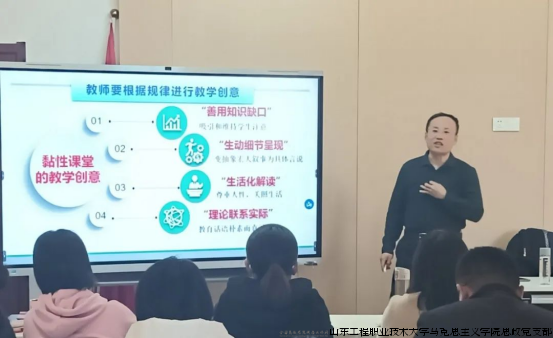刘教授进一步阐释了黏性教学设计的四个关键着力点:一是巧妙运用知识缺口,引发学生的求知欲;二是注重呈现生动细节,让教学内容更具吸引力;三是进行生活化解读,拉近知识与学生生活的距离;四是坚持理论联系实际,提升学生对知识的运用能力。他着重强调,黏性教学的核心在于提高学生参与教学情境的主动性。教师要精心设计教学活动,让学生成为学习的主体,避免盲目追求创新,而是要围绕马克思主义基本原理、中国特色社会主义理论体系、社会主义核心价值观等理论主线,构建教学活动与学生成长的关联图式,实现课程教学逻辑与学生自我建构逻辑的有机融合。