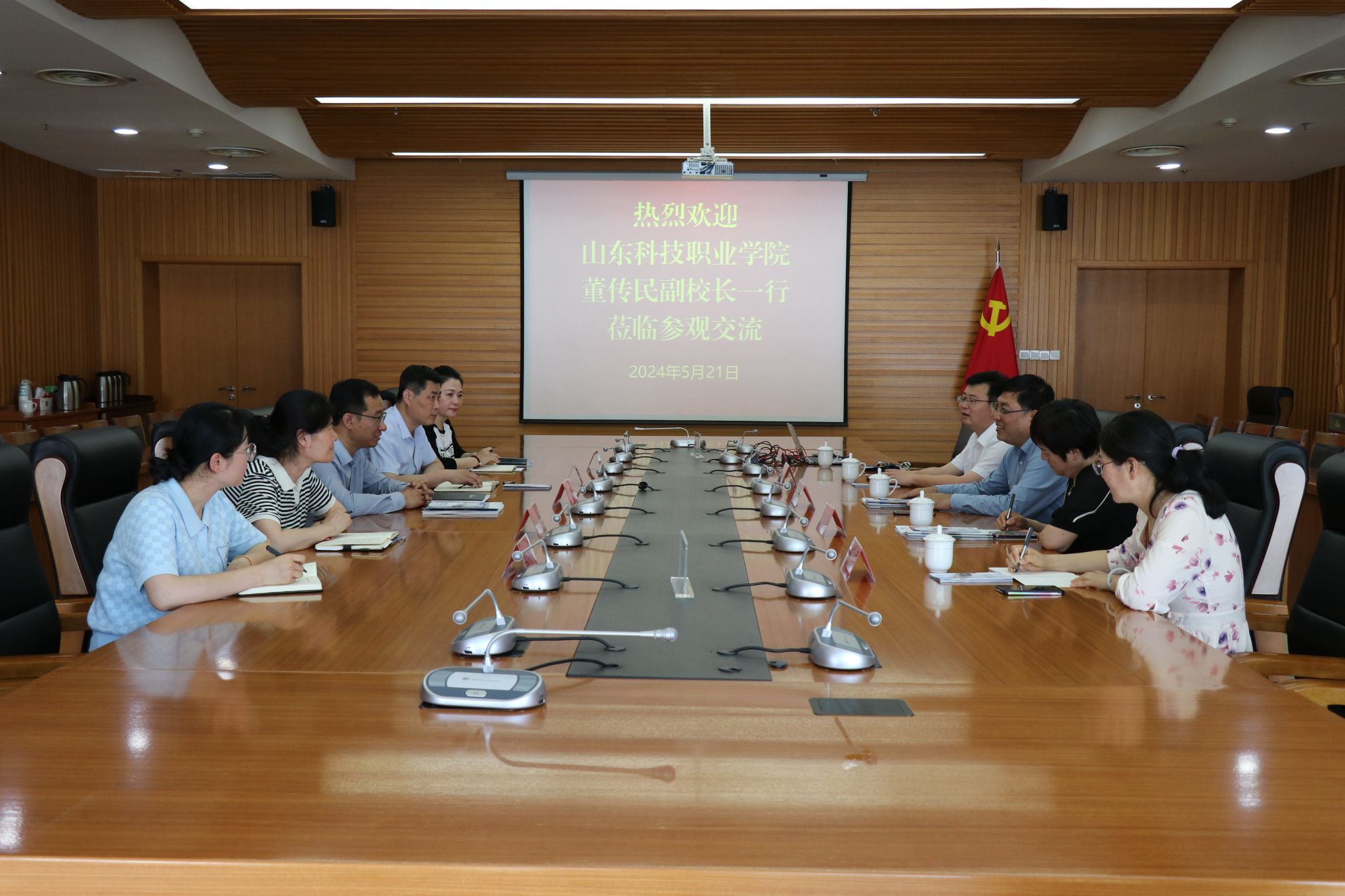 现场调研后,双方进行了座谈交流。董传民对潍坊市图书馆领导的热情接待表示感谢,高度评价了市馆在智慧图书馆建设、阅读推广等方面所取得的成果。他简要介绍了我校的办学特色、专业建设和图书馆开展文化育人等情况,深入分享国家样板党支部培育创建的思路,积极探索党建与业务创新融合新模式。他强调,双方应加强全方位深入交流与合作,通过馆校交流拓思路,互鉴互学谋发展,共同推进“潍坊高校图书馆联盟”建设。