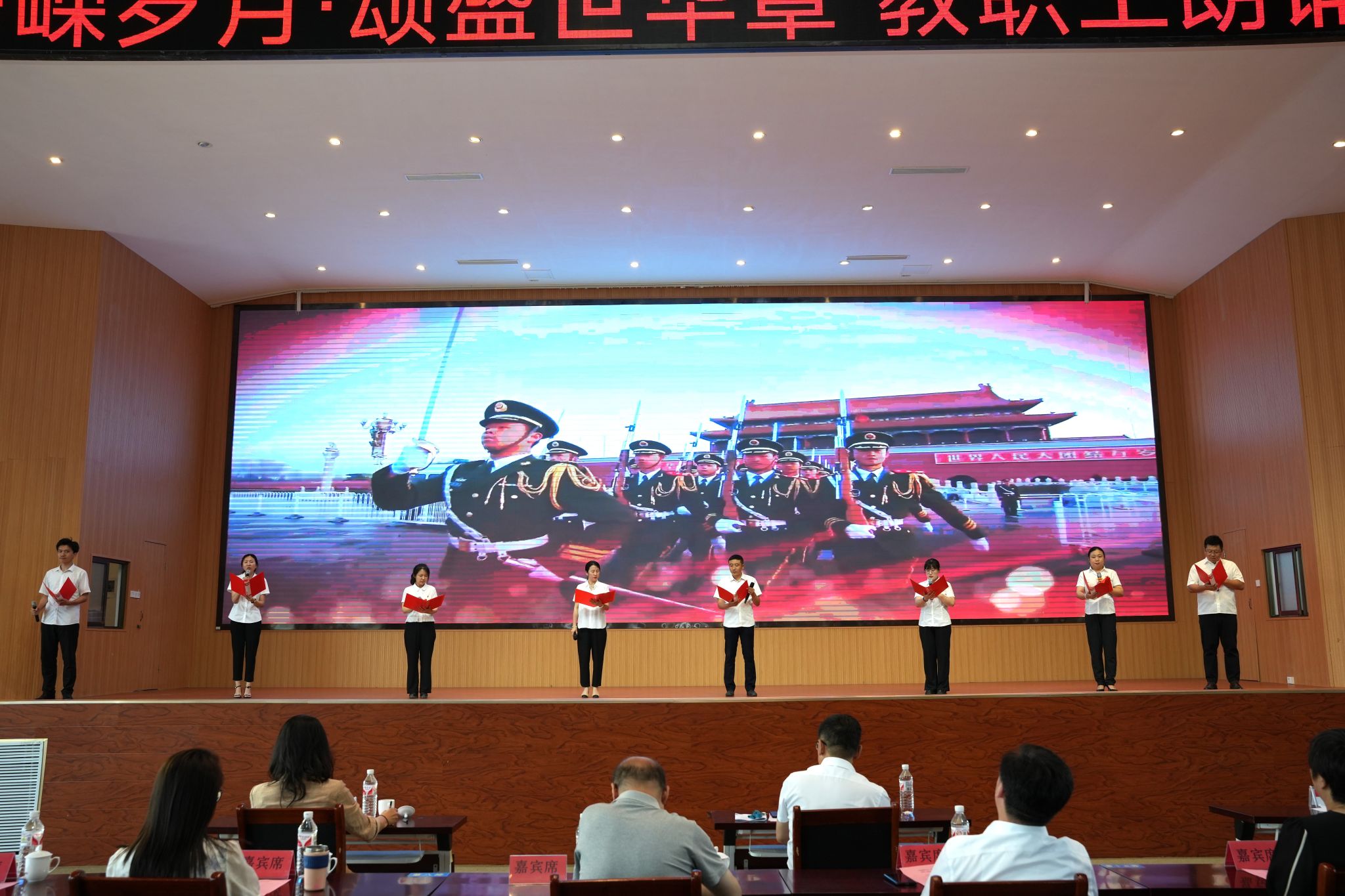 此次朗诵比赛是学校全体教职工庆祝中国共产党成立103周年的一次深情献礼,展现了全体教职工的精神风貌,营造了浓厚的文化氛围,进一步激发了大家坚定理想信念,立足岗位职责,勇担育人使命的教育初心。全体教职工将以此次活动为契机,用实际行动诠释党的光辉形象,用优秀的工作业绩为中华民族的伟大复兴贡献力量!