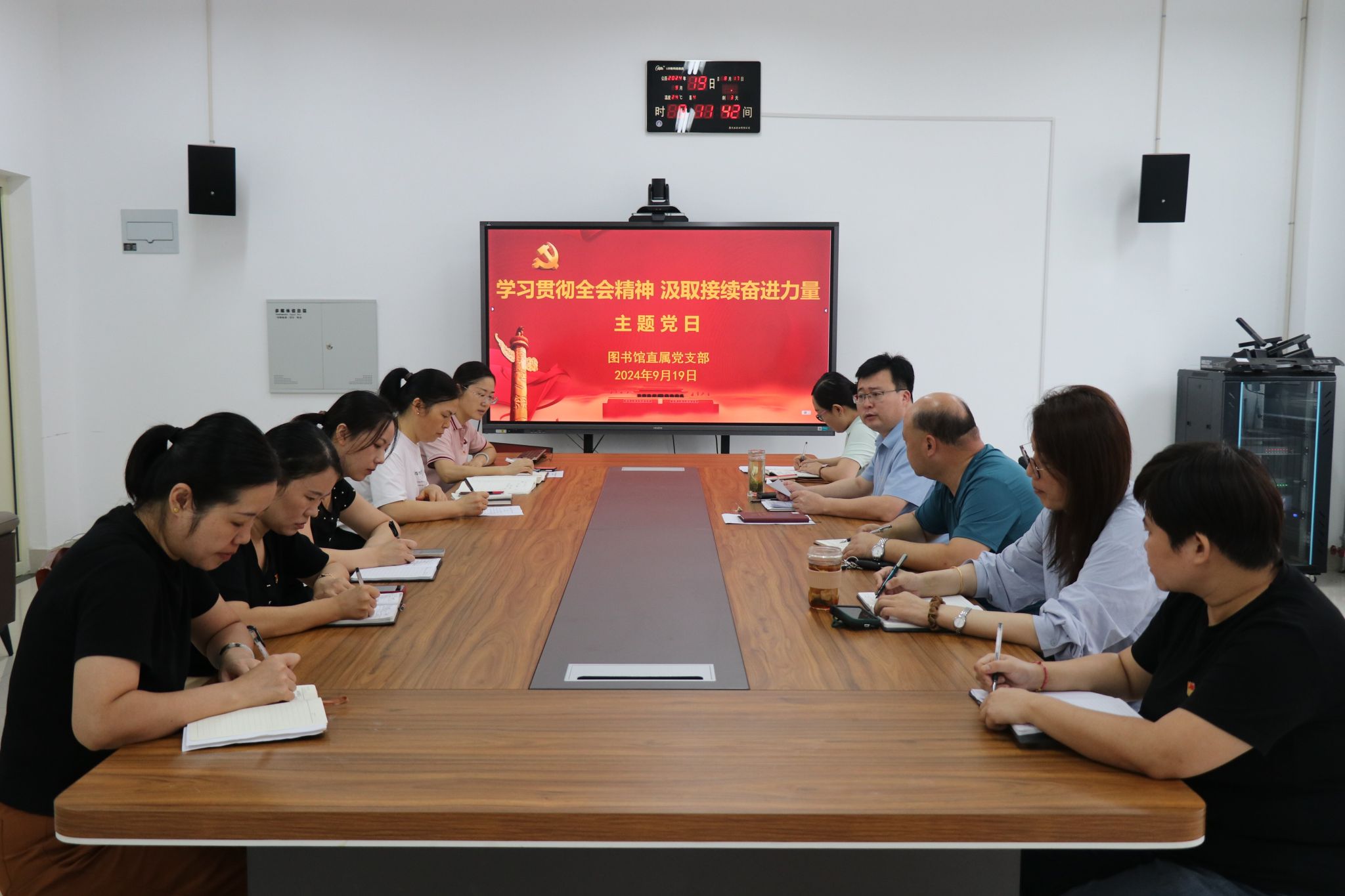 为深入学习贯彻党的二十届三中全会精神的丰富内涵、精髓要义和实践要求,9月19日,图书馆直属党支部在厚德楼党员活动室开展“学习贯彻全会精神 汲取接续奋进力量”主题党日活动。