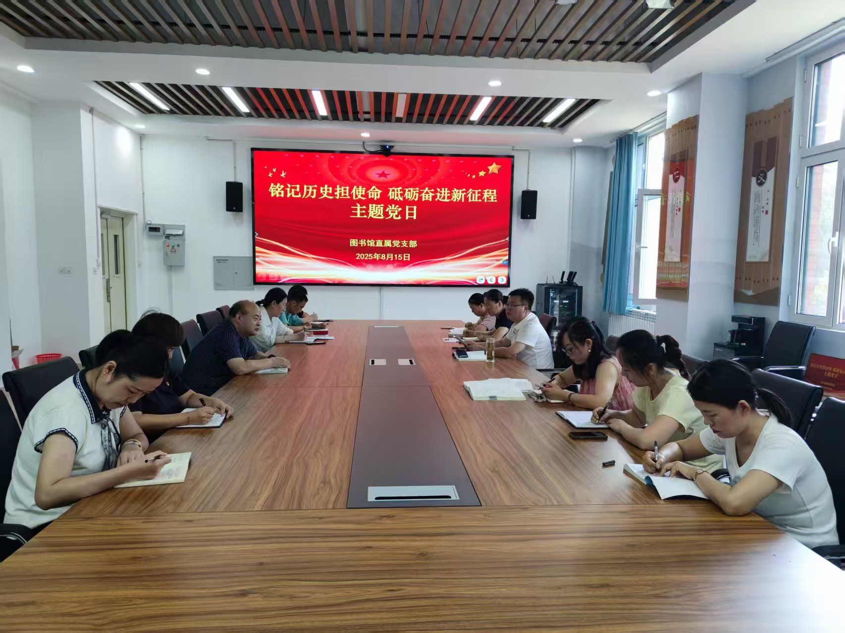 为强化党性修养,激发党员的使命感与责任感,8月15日,图书馆直属党支部在厚德楼职工书屋开展以“铭记历史担使命·砥砺奋进新征程”为主题的党日活动。