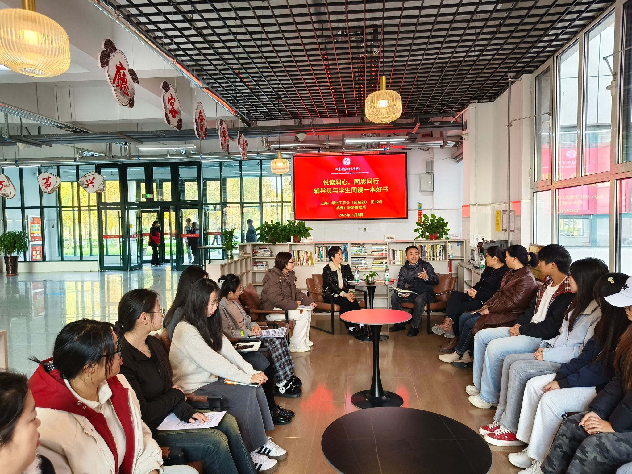 为深入推动书香校园建设,营造“一站式”学生社区育人环境,促进师生深度交流,11月5日下午,图书馆联合学生工作处(武装部)、经济管理系共同举办的首期“悦读润心,同思同行”—辅导员与学生“共读一本好书”读书沙龙,在经济管理系“书香会客厅”顺利举行。师生代表30余人参加活动。