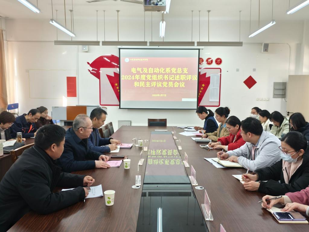 1月7日,电气及自动化系党总支全体党员在六号楼三楼会议室召开2024年度党组织书记述职评议会,学院党委书记孙众志以普通党员身份参加。会议由党总支书记赵秋叶主持。