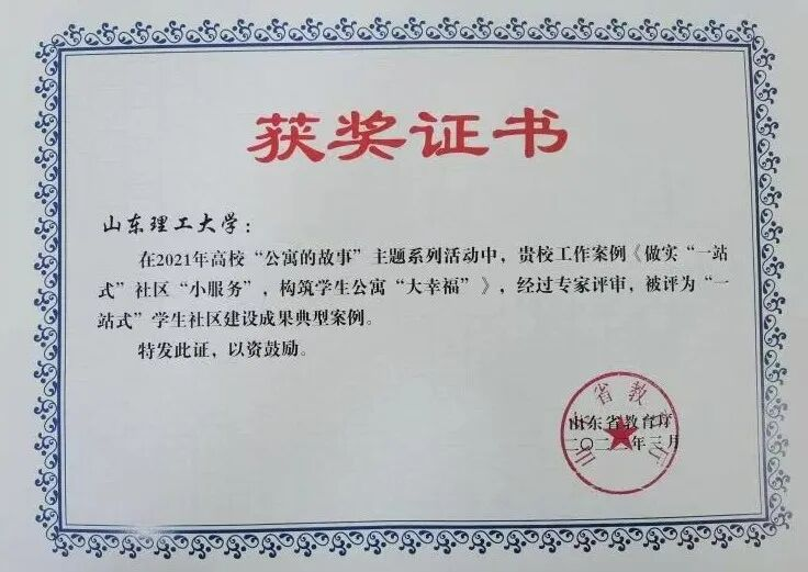 山东理工大学以党建为引领,党建带团建,将党建阵地与社区育人空间相融合,积极探索“一站式”学生社区教育培养新模式,努力把学生公寓打造成为党建和思想政治工作的高地、培养人才的园地、管理服务学生的基地、维护校园安全稳定的阵地。