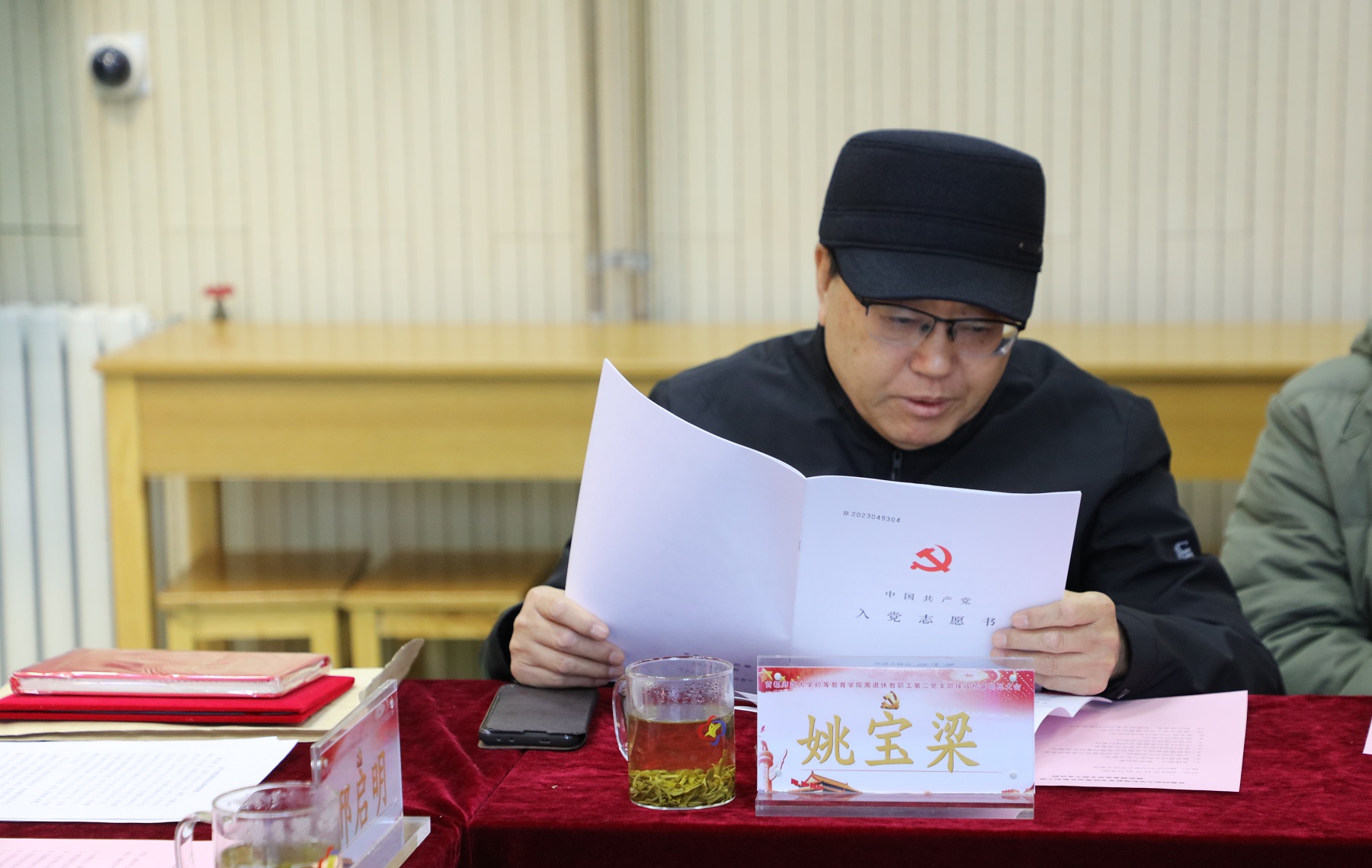 11月29日上午,初教院离退休教职工第二党支部召开接收姚宝梁老师加入党组织会。党支部书记、支委委员邢启明、舒京主持会议。退休教师代表、学校离退休干部处处长董璐、学院党委书记刘海涛,党办谢朝霞、高湘平到会。