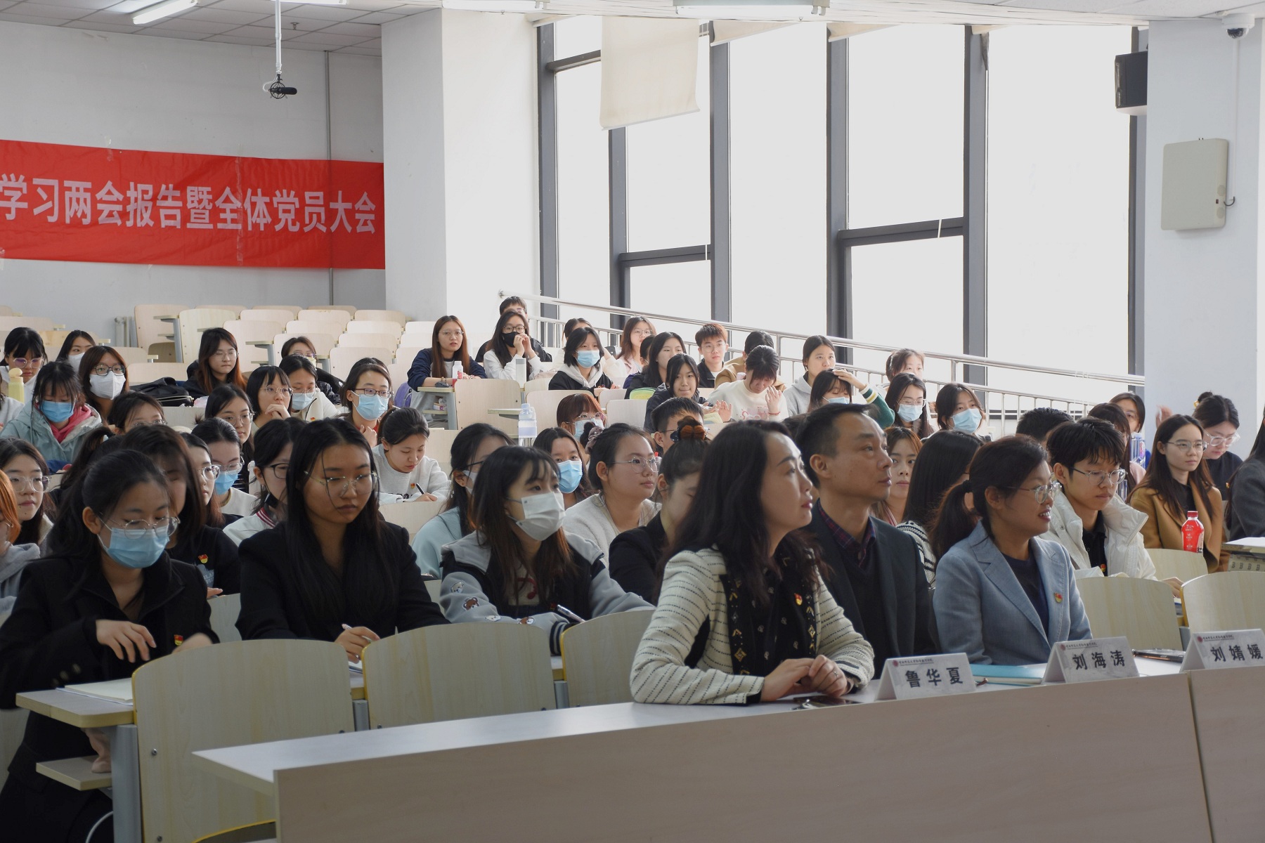 鲁华夏以《学习“两会”精神,做模范党员》为主题讲授党课,她带领全体本科生党员一起学习习近平总书记两会期间重要讲话精神,包括:新质生产力、深化改革、大国工匠、科技和产业创新等内容;关于今年政府工作报告,主要讲解了十方面任务;她还引导大家提升自己综合能力,提高综合素养,应对人工智能的挑战。