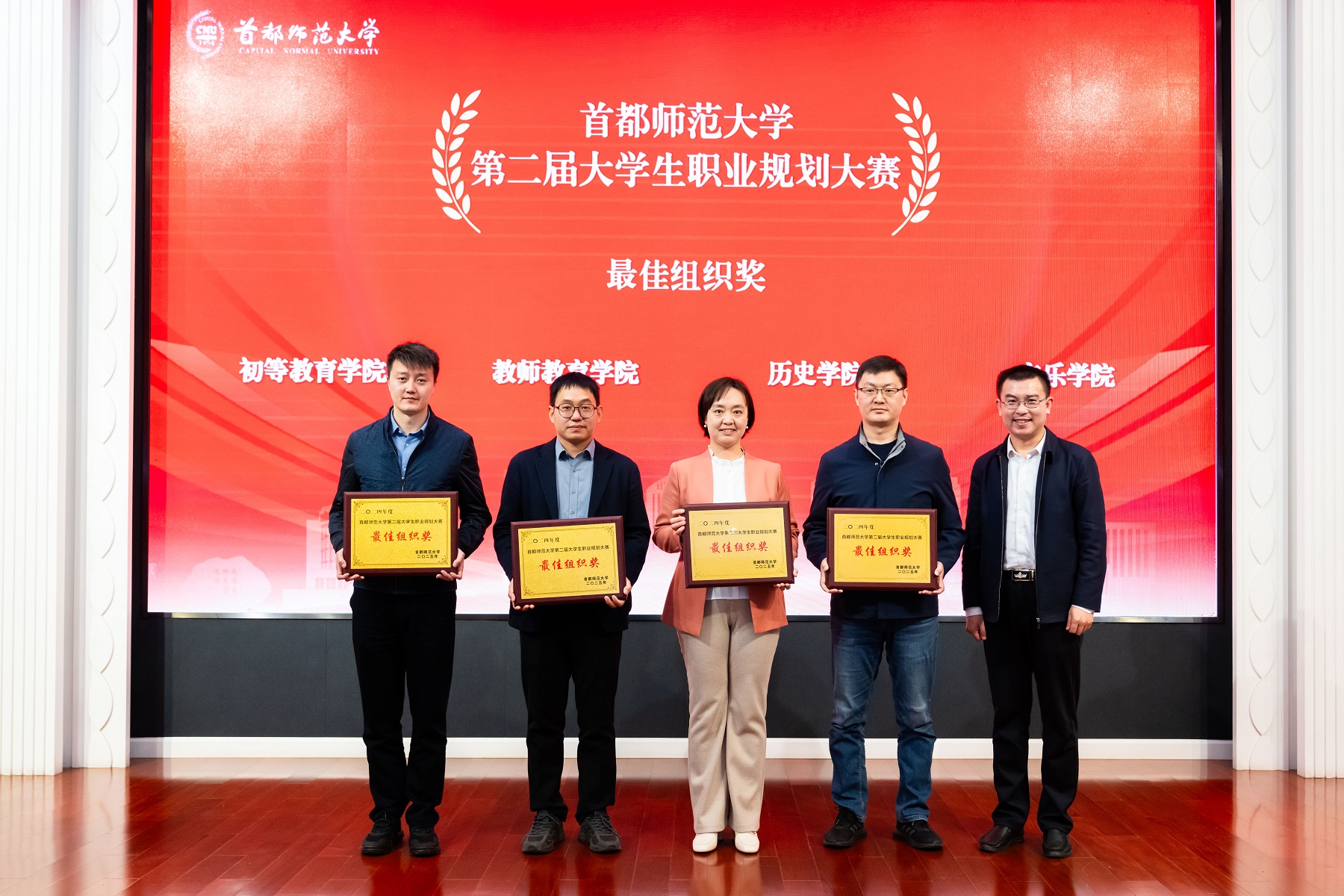 学院在2024年度首都师范大学第二届大学生职业规划大赛中同时斩获佳绩:学院获得“最佳组织奖”;韩录老师获得“优秀指导教师”,她指导2022级本科生刘欣获北京市银奖、校赛就业赛道本科生组一等奖,指导2024级研究生宋俊霖获校赛就业赛道研究生组一等奖,指导2023级本科生郭俊彤获校赛成长赛道二等奖。