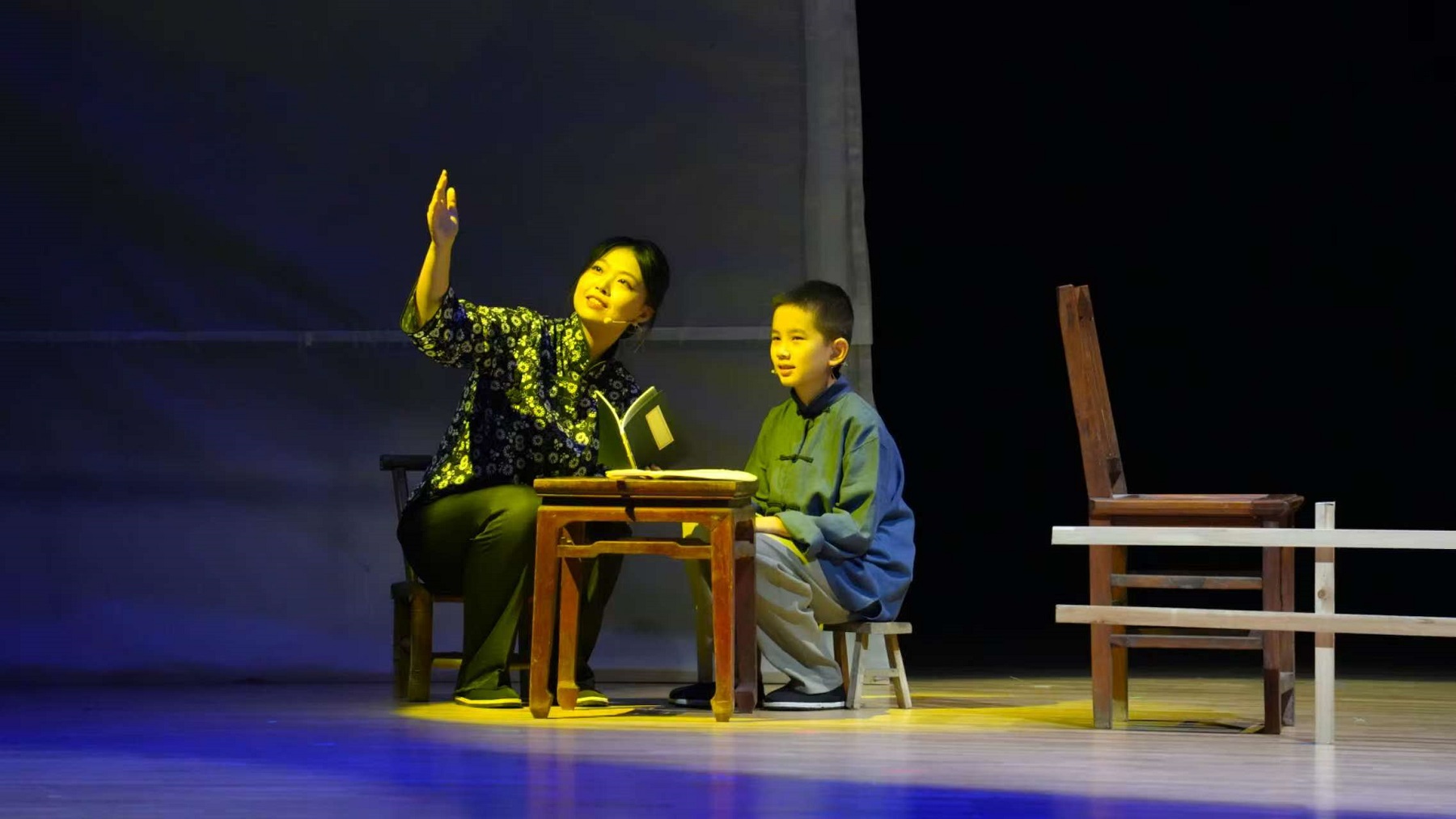 整场剧目以诗意化的语言阐述“教师”的多重内涵,通过还原孙敬修的成长轨迹以及“报考师范”“衙门口小学任教”“华语学校面试”等场景,再现其在旧教育体系中坚守初心的奋斗历程,凸显其“教育救国”的理想。剧目大胆创新,运用“与黑衣人对话”“先贤跨时空寄语”等艺术形式,将历史叙事与当代教育思考相融合,彰显“敬业修身、甘为儿童”的教育理念。