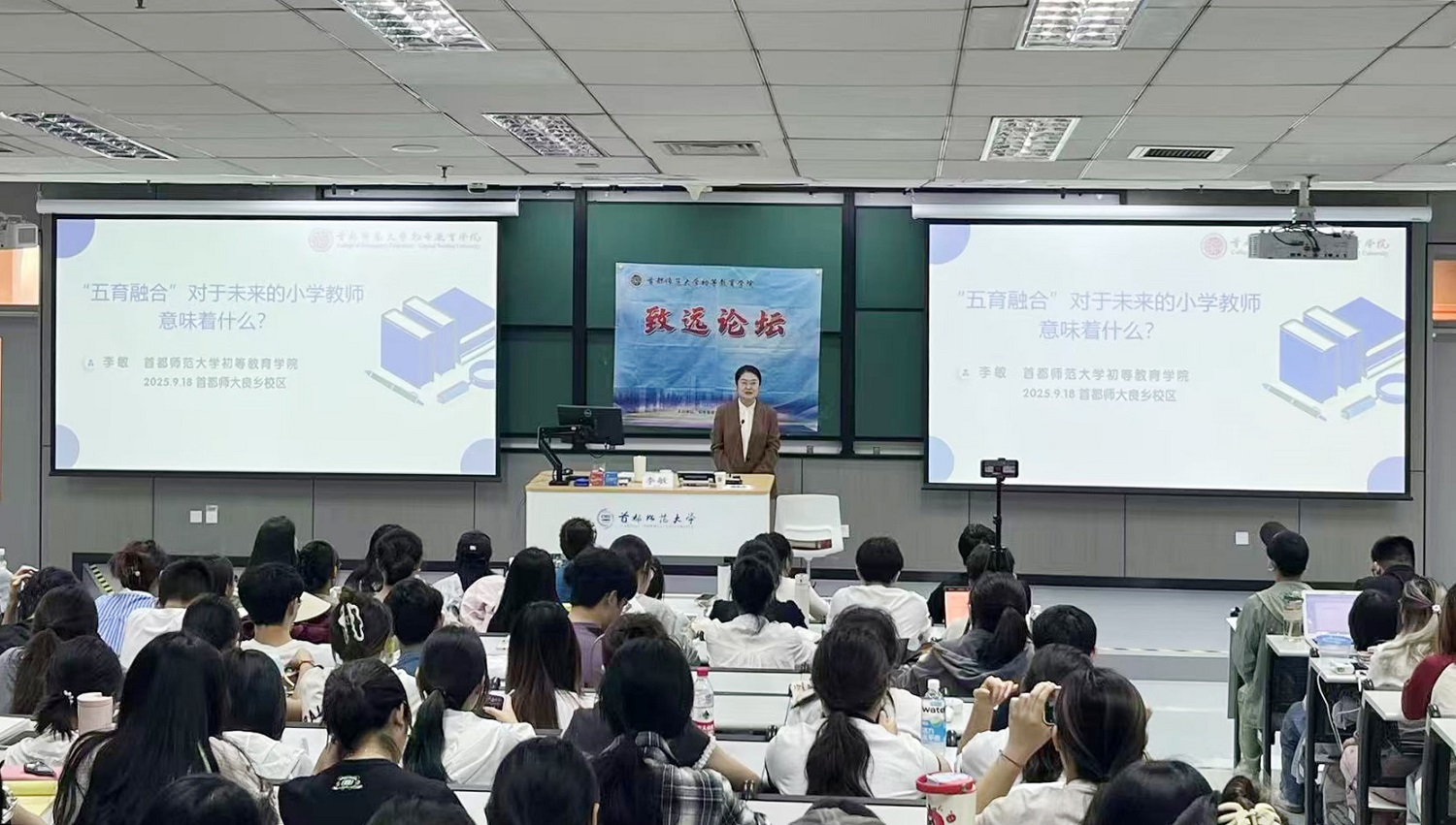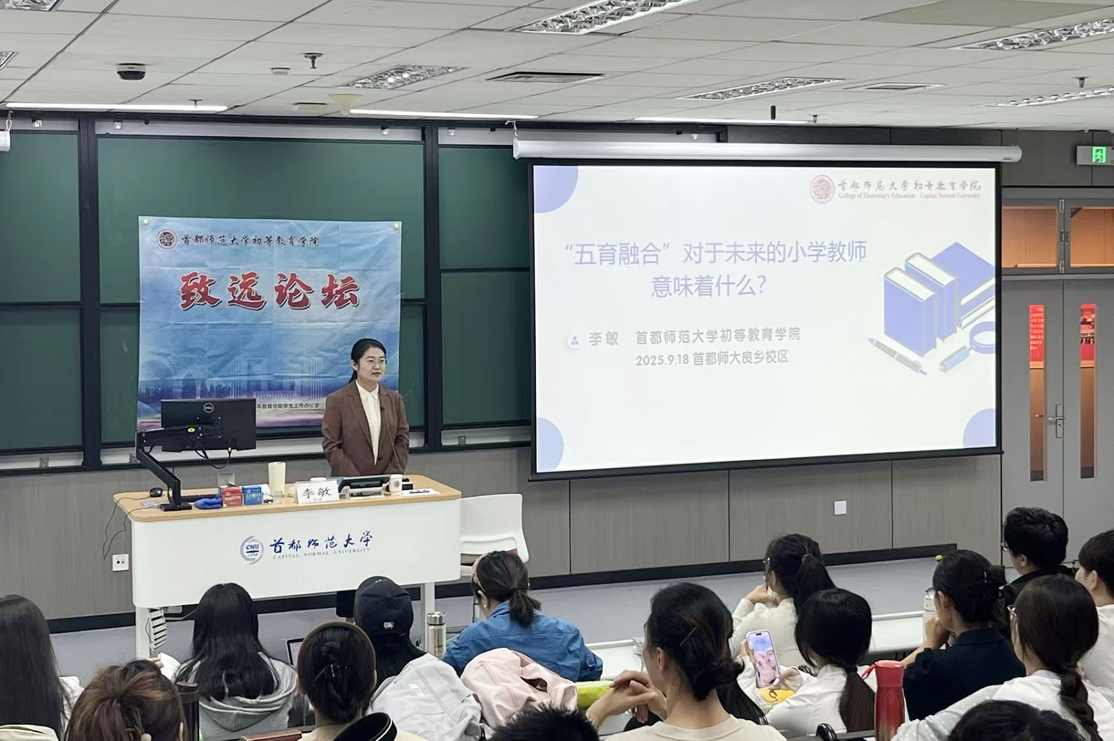 为帮助2025级新生深入理解“五育融合”教育理念,明确未来小学教师的职责与能力要求,初等教育学院于9月19日下午举办第47期致远论坛,邀请院长李敏教授为学生做“‘五育融合’对于未来的小学教师意味着什么”主题讲座。