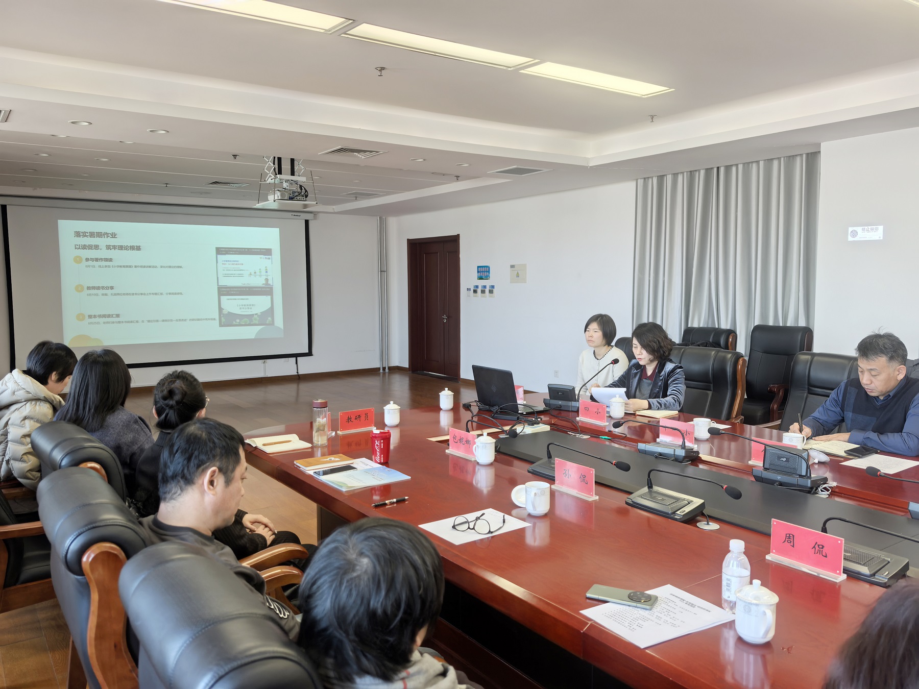 马长燕老师介绍了下一学期将通过建立微单元研修、推动经验总结与提炼、构建“项目组研修-项目校校内共研-区域共享”三级辐射机制等举措,推动五育融合在语文教学中落地。孙铭明介绍了四位一体专业化研修体系,后续将继续深化培训内容、夯实科学学科五育融合基础。