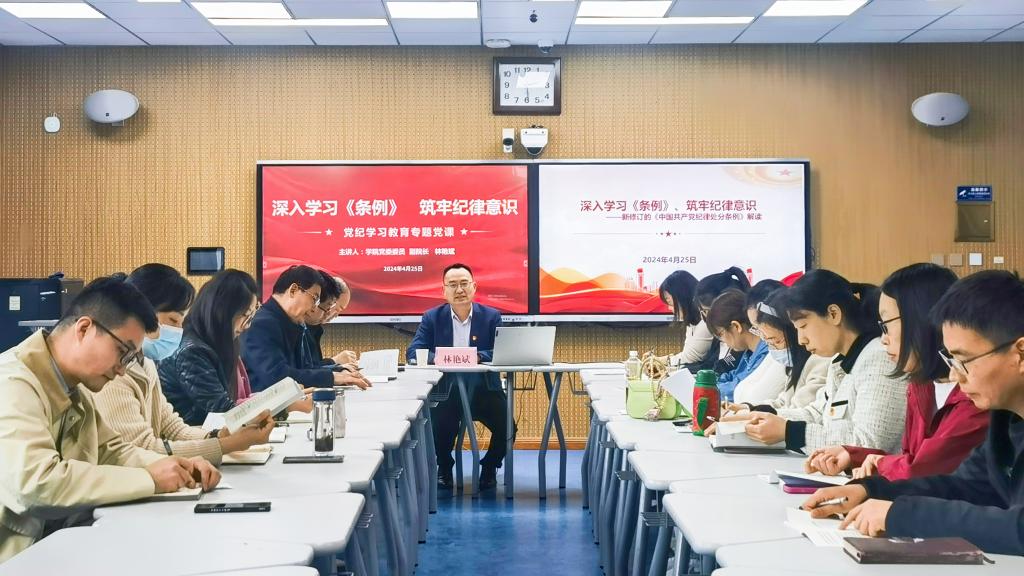 为引导广大党员教师在党纪学习教育中先学一步、学深一层,4月25日,学院党委委员、副院长林艳斌为经济管理系全体党员教师讲授“深入学习《条例》,筑牢纪律意识”党纪学习专题党课。