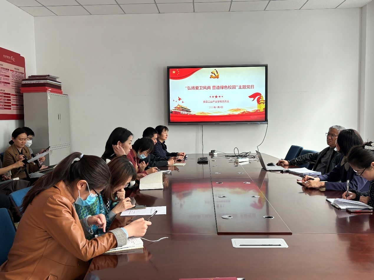 为进一步弘扬爱国卫生运动优良传统,推动爱国卫生运动的深入开展,积极营造全民参与的浓厚氛围,提升党员服务意识和奉献精神,营造干净整洁、规范有序的人居环境,4月9日下午,食品工业产业学院党总支开展“弘扬爱卫风尚 营造绿色校园”主题党日活动,食品工业产业学院党总支书记张咏梅主持,全体党员教师参加。