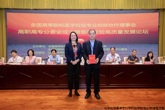 全国高等院校医学检验专业校际协作理事会理事长夏薇宣读医学检验技术专业高职高专分委会成立文件,并为新当选的主任委员、副主任委员颁发聘书。新当选的高职高专分委会主任委员,日照康养职业学院党委委员、副院长张纪云教授作表态发言。多位专家学者围绕医学检验技术的前沿进展、人才培养模式创新、实践教学改革、产教融合发展等热点话题作主题报告。