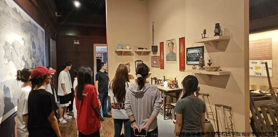 活动开始前,在社区工作人员的安排下,全体师生来到十里堡社区展览馆,依次参观了“衣食住行”“人生礼仪”“历史名人”“节令生活”四大主题展厅,通过3000余套展品系统了解了鲁南地区乡村民俗文化。作为曾经的纺织产业聚集地,十里堡留存着丰富的文化印记。展览中,国家领导人会见纺织女工的珍贵影像、繁忙的车间作业场景、热闹的厂区生活照,以及老纺织工具等物件,生动再现了纺织业的辉煌岁月。以老纺织工人为引领,带动纺织子弟、纺织二代等群体积极参与社区建设,将纺织业“精工细作”的精神融入社区治理中。
