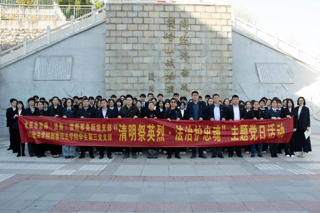 刑事司法学院学生第三党支部与北京市京师(济南)律师事务所党支部在茂岭山战场遗址党史教育基地联合开展主题党日活动。学院党委书记孙学章,党委副书记张文海,团委负责人、学生第三党支部书记秦增忠,北京市京师(济南)律师事务所主任田宁出席,京师济南律所党员代表和刑事司法学院学生第三党支部党员代表参加。
