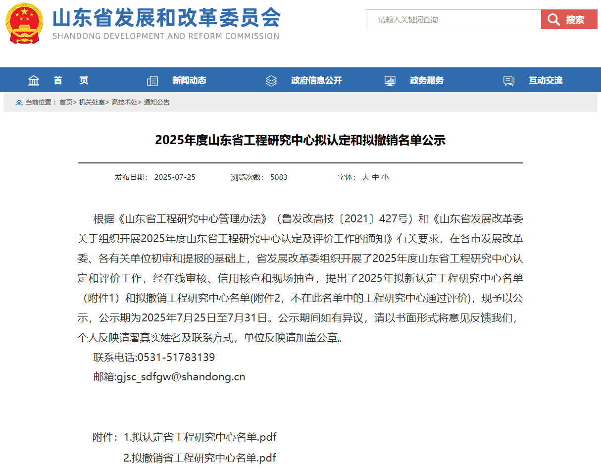 我校获批1个山东省工程研究中心