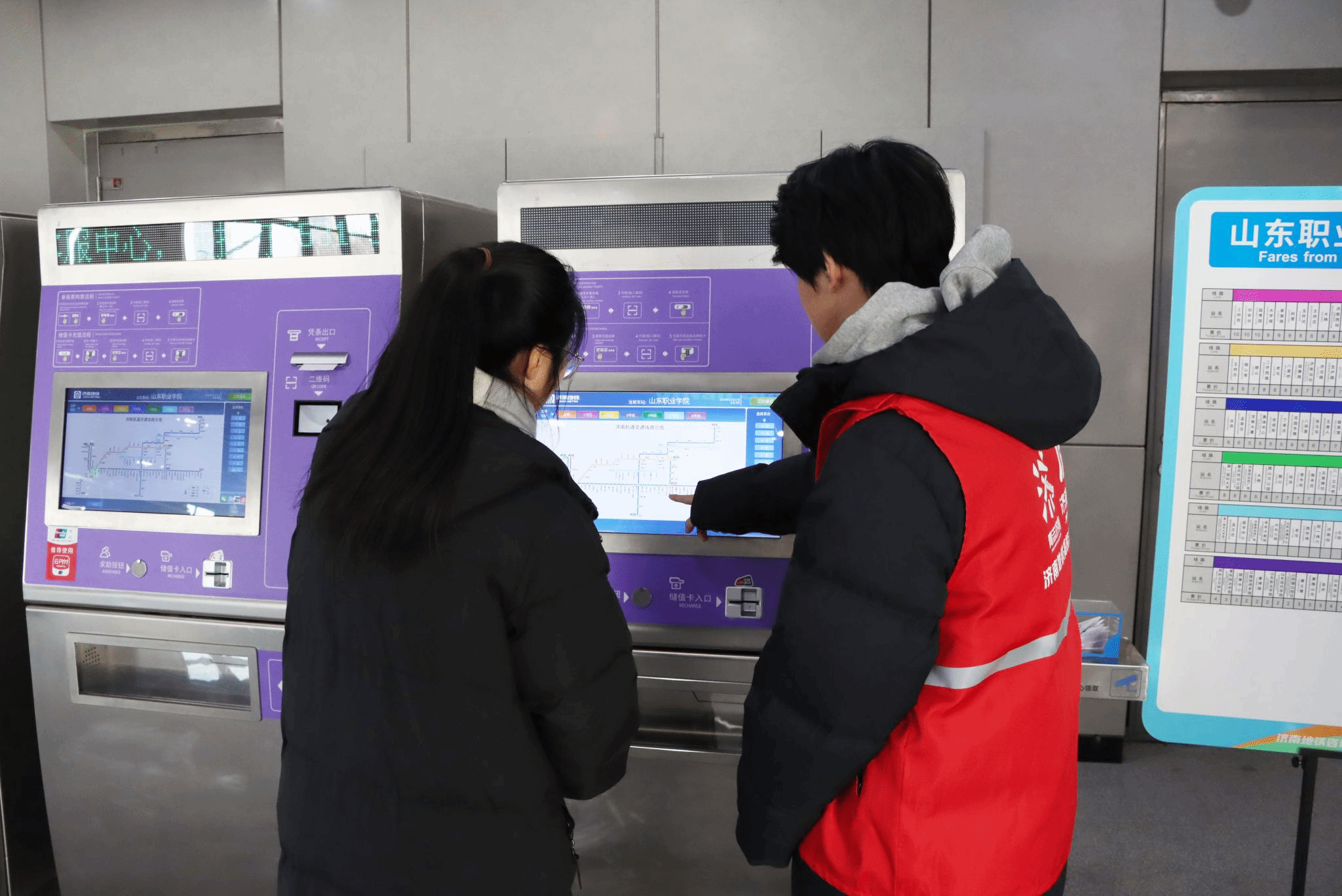 2025年12月27日以来,济南地铁4号线、8号线及济阳线有轨电车相继开通运营。我校城市轨道学院选派“轨交护航”志愿服务队的122名学生志愿者,在沿线各站点,以专业热忱的服务为新线顺畅启航筑牢保障,成为泉城地铁里一道亮丽的青春风景线。