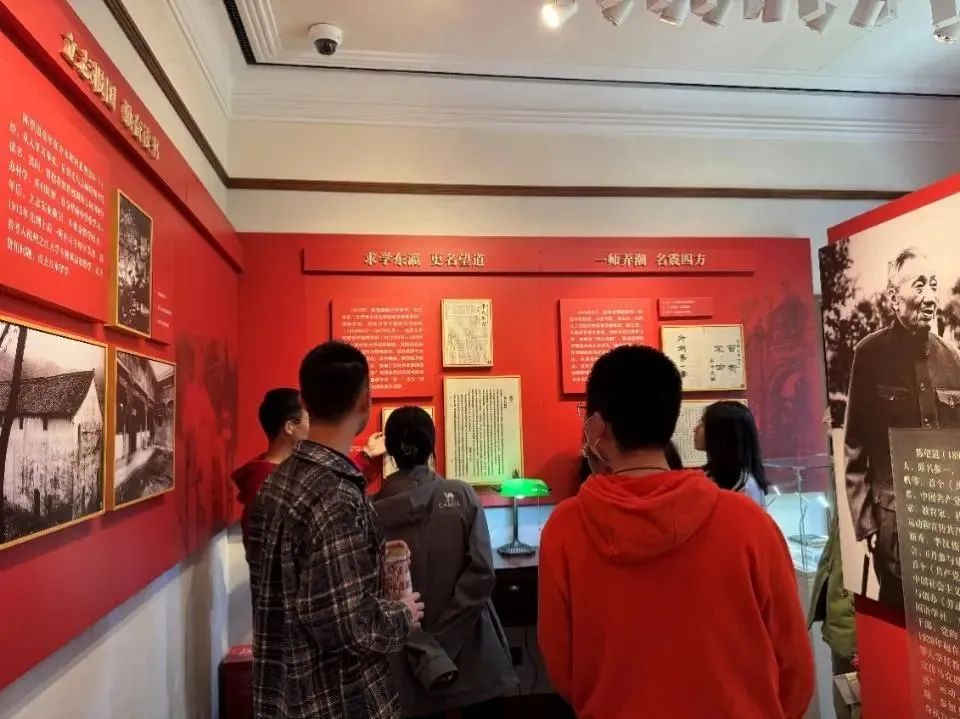 为深入学习贯彻习近平新时代中国特色社会主义思想和党的二十大精神,深化党史学习教育,加强党员理想信念教育,促进校内外党建联建,2025年4月28日下午,在金融学院辅导员行政教工党支部组织委员王绚老师和会计学院专职组织员王碧莹老师的带领下,金融学院分党校、金融学院博士第一党支部联合会计学院学生党支部组织党员、入党积极分子等一同前往《共产党宣言》展示馆、陈望道故居进行参访学习。