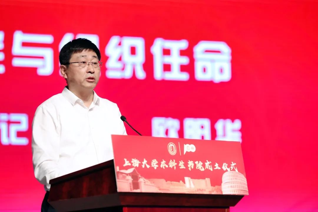 上海大学党委副书记欧阳华宣读书院成立决定与组织任命。