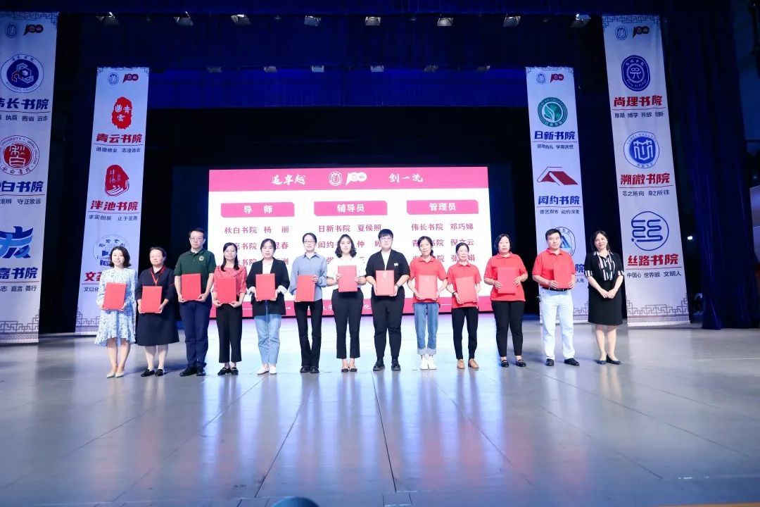 上海大学党委常委、副校长、中国工程院院士吴明红依次为书院导师、辅导员和管理员代表等书院管理服务团队颁发聘书。