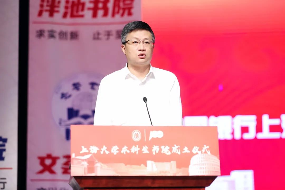 百年上大恰青春,踔厉奋发正当时。为全面落实立德树人根本任务,培养全面发展的卓越创新人才,在纪念上海大学建校100周年、喜迎党的二十大胜利召开的重要时刻,9月23日上午,上海大学本科生书院成立仪式在伟长楼举行。