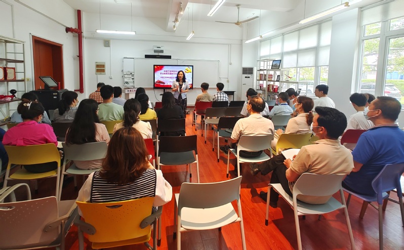 中德工程学院党总支书记、院长王向红教授以“职业教育发展新方向——科教融汇”为题,为中德工程学院、科研处在校党员和中德工程学院入党积极分子讲专题党课。王向红教授重点围绕“什么是科教融汇?如何‘融’?怎样‘汇’?”作了深入浅出的讲解,王向红指出,职业教育要以探索省域现代职业教育体系建设新模式为“一体”、以建设市域产教联合体和跨区域行业产教融合共同体为“两翼”深化职业教育改革,做到以产定教、以教促产、产教融合。联系中德工程学院实际,我们要基于“专业-平台-团队”人才链与“需求-研发-转化”创新链内外双循环发展路径基础上,提出一个本土化、有效化的高等职业院校科研与教学融汇正向协同联动机制。“科”“教”不分家,重点在“融”,结果是“汇”,要把科技革新的力量与学院育人工作紧密结合起来,融汇成一股强大力量,助力职业本科创建工作。