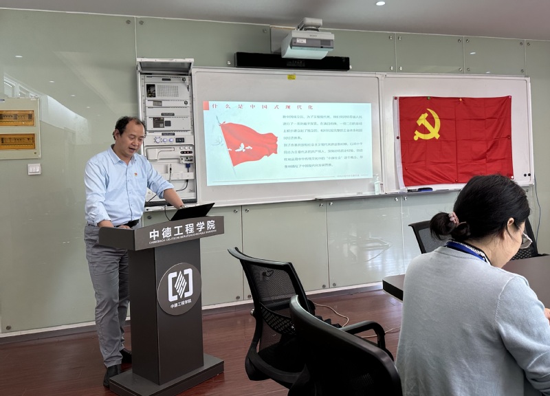学院党总支副书记孟秋静以“中国式现代化和推动职业教育高质量发展的实践”为题,从“为什么要走中国式现代化道路?什么是中国式现代化?为什么说高质量发展是全面建设社会主义现代化国家的首要任务?向培养一流技能人才和大国工匠进军”四个方面为中德工程学院教师党支部全体党员讲授专题党课。孟秋静强调,建设中国式现代化是实现中华民族伟大复兴的唯一路径,建成中国式现代化是实现中华民族伟大复兴的重要标志。要实现这个目标,教育发挥着非常重要的作用。学校在向职业本科升级转型办学中,要借力国家对职业教育的战略定位与发展规划,精确把握市场脉搏,精心优化内外部资源,精准锚定着力点,培养一流高素质技术技能人才,为推动学院高质量发展找到合适的路径。