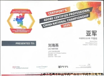 近日,上海工艺美术职业学院在2025 Adobe Certified Professional(ACP)世界大赛中国赛区总决赛中取得优异成绩。该校摄影与摄像艺术专业学生刘海燕荣获平面组亚军,成功晋级世界总决赛;艺术设计专业学生张尤佳荣获平面组三等奖。