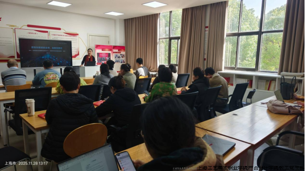 主题党日活动后,教工党支部组织开展了集体备课学习活动,特邀国家精品课程主讲人、国规教材与国家教材奖获得者包文君教授,作题为“智慧教学创新与实践”的专题分享,推动信息技术与教育教学深度融合,助力教师把握智慧教育新形态。包教授阐述了AIGC在教育中的应用逻辑与伦理边界,引导树立正确的AI赋能教学观念,并分享艺术设计类课程中AI应用及教材奖申报的实践经验。活动还邀请超星集团上海分公司培训师,指导教师运用超星平台AI工具实现备课、授课、互动及评价等教学环节的智能化转型,通过现场演示展现AI技术在智能备课、情境创设、交互评价等方面的具体应用。