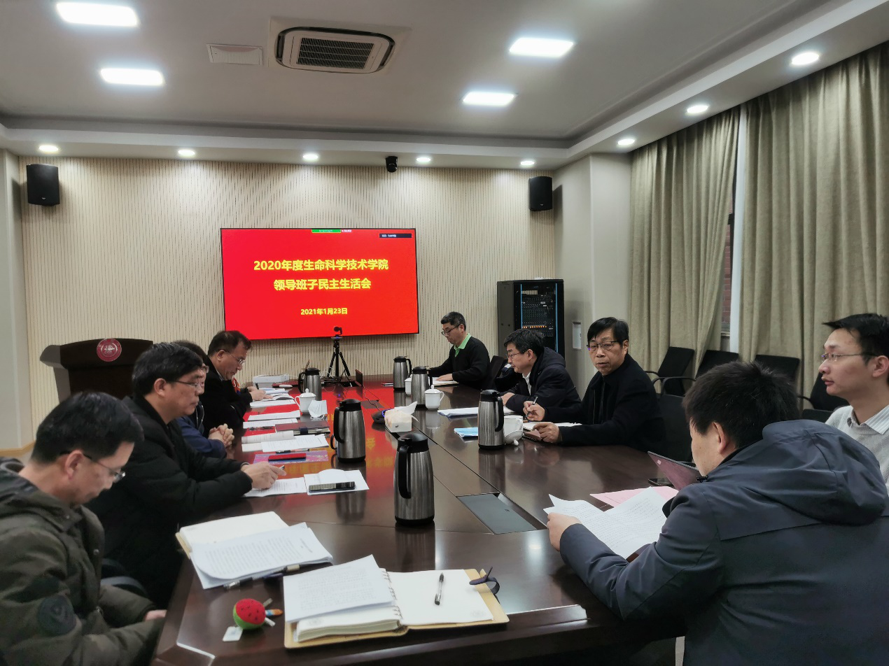 按照学校党委关于2020年度二级单位领导班子民主生活会的安排部署,2021年1月23日下午,生命科学技术学院领导班子在学院会议室2-116召开2020年度领导班子民主生活会,党委常委、常务副校长、第三督导组组长丁奎岭,党委常委、党委统战部部长、第三督导组副组长张卫刚出席并指导,生命科学技术学院党委书记嵇绍岭主持会议。