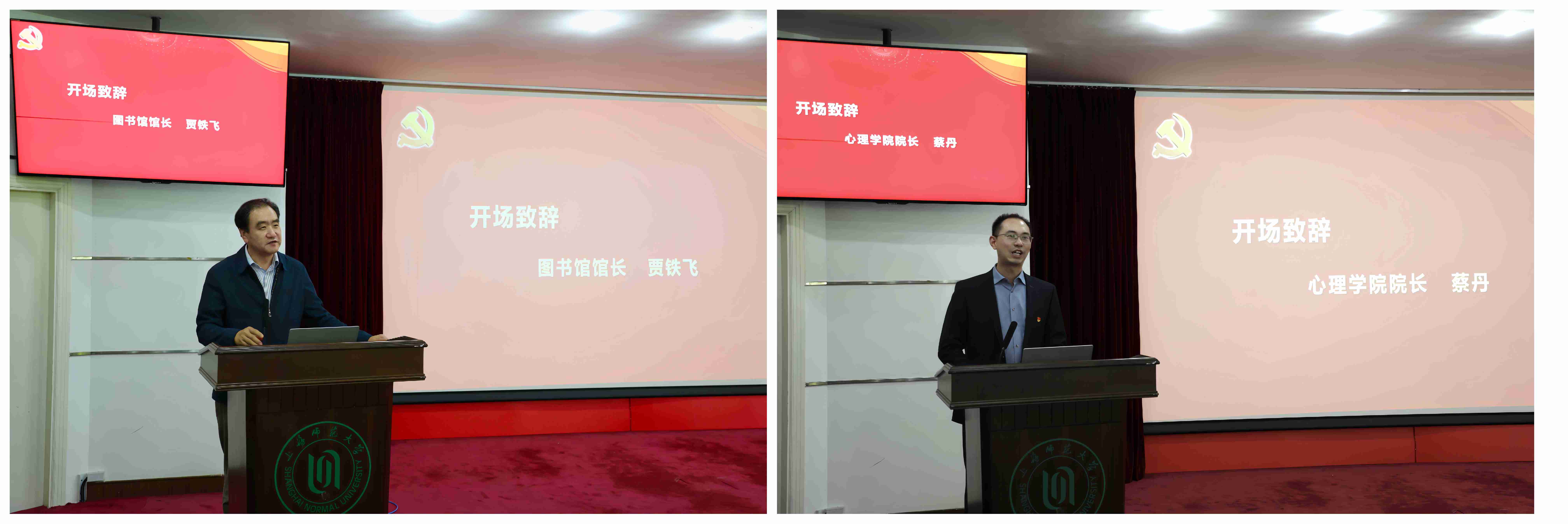 图书馆馆长贾铁飞和心理学院院长蔡丹分别作开场致辞。贾铁飞表示,与心理学院开展联学共建让图书馆增强了干事创业的信心,图书馆将以此次活动为契机,深入践行“五个贴近”:贴近人才培养,贴近学科发展,贴近专业建设,贴近科学研究,贴近文化传承,通过增强沟通,精准对接学科需求,不断提升服务保障能力。蔡丹感谢图书馆在资源保障与学科评价方面为心理学院学科发展作出的贡献,他期望双方借助联学共建活动可以开展多方位、深入的交流,在工作中能够更加紧密、深度地合作。二人在致辞中表达了共同的心声,以联学共建赋能创新发展,携手共进,合力助推学校高水平大学建设再上台阶。