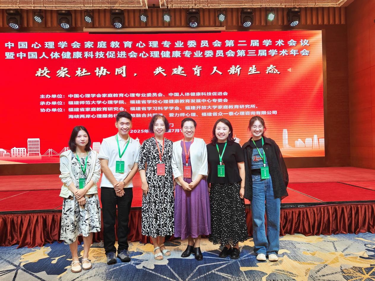 为响应《教育强国建设规划纲要(2024-2035年)》提出的健全学校家庭社会协同育人机制、普及心理健康教育等重要目标,第二届中国心理学会家庭教育心理专业委员会学术会议暨第三届中国人体健康科技促进会心理健康专业委员会学术年会于2025年7月7日至10日在福建厦门隆重举行。上海师范大学心理学院李丹教授,乌阿茹娜副教授,研究生次旺、梁宇琪、卓一佳参会。