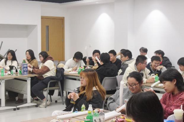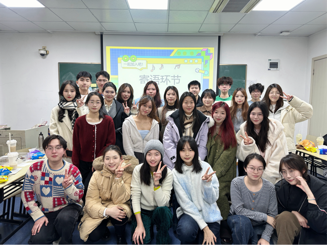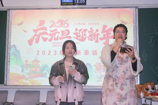 本科生朝气蓬勃,巧妙结合趣味游戏活动和丰富才艺展示,活动现场高潮迭起,欢声笑语。接龙猜词活动中,同学们分组协作,一字一词默契配合,创造了不少令人捧腹的创意组合,现场笑声不断;“错误的乘法表”环节则巧妙考验了大家的反应与思维能力,熟悉的口诀配上出其不意的答案,让不少同学“舌头发颤”,引得阵阵欢笑。节目表演环节更是精彩纷呈。既有创意十足的“计算机弹奏”,也有深情款款的尤克里里弹唱;既有轻松搞笑的朗诵与段子模仿,也有精心准备的歌舞演绎。