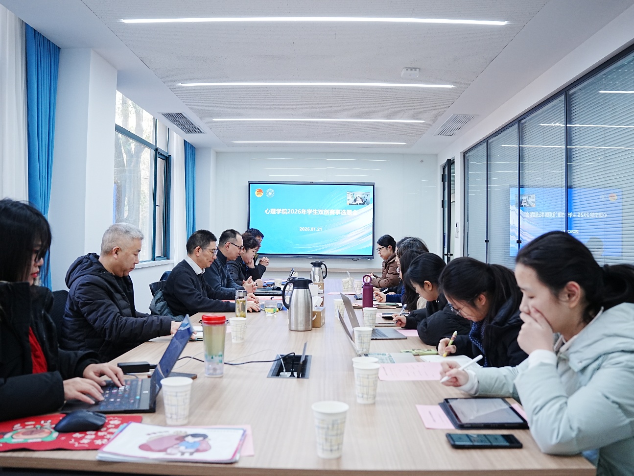 1月21日上午,上海师范大学心理学院2026年学生双创赛事选题会在上海师范大学徐汇校区教苑楼D座105室举行。会议旨在提前谋划、精准培育新一轮“挑战杯”等重大双创赛事项目,彰显学院对学生创新创业能力培养的高度重视与前瞻性布局。学院党委书记张益、院长蔡丹、副院长罗俊龙、副院长陈宁、各种子项目指导教师和学生代表参会。